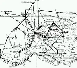 Communications relied heavily on field telephone and runner until the latter stages of the war when mostly conventional forces took the field. A simple signaling system via a series of gunshots was also used to communicate while moving in the forests, with the pattern and sequence of the shots conveying meaning to other PAVN troops.[14] When VC or PAVN did acquire modern equipment via capture or supply, they made numerous attempts at communications deception, imitating US radio transmissions and call signs to lure US/ARVN helicopters and troops into ambushes, or redirecting artillery fire from themselves on to US/ARVN positions via bogus requests for artillery adjustment and support.[15]