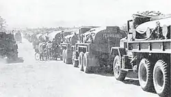 Load bearing by porters was greatly enhanced by the use of ingenious "steel horses" – bicycles specially modified by widening the handlebars, strengthening the suspensions and adding cargo pallets. Guided by two men, the specially modified bikes could move 300–400 pounds, several times that of a single porter.[23] Older men made up many of the long-term laborers as those younger were drawn off into combat and female labor was used extensively in a wide range of logistics tasks.[24]
