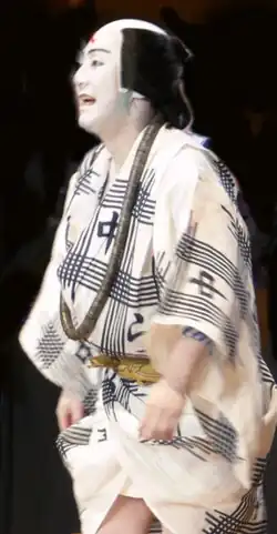 - ^ a b While the stage names of all kabuki actors have retained traditional order (Surname-Givenname) on Wikipedia, birth names of those born after the Meiji Restoration are in Western order (Givenname-Surname).