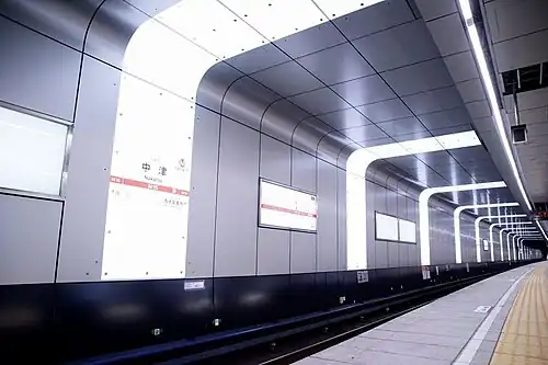 Nakatsu Station (中津駅, nakatsu-eki) is a train station in Kita-ku, Osaka, Japan on the Osaka Metro Midōsuji Line.[1] While situated relatively close to the station of the same name operated by Hankyu Railway, there is no free transfer between the two stations.