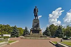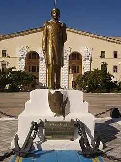 With the dispatch to the front of the entire cadet force and most of the teaching staff, the People's Commissar of the Soviet Navy issued Order No. 02255 on 1 November, disbanding the Black Sea Naval School. The remaining teaching staff were transferred to other naval educational institutions, and the surviving property of the school was sent to the Caspian Higher Naval School.[6] The cadets of the school were formed into the 76th Naval Rifle Brigade, commanded by the former head of the school, Captain 1st Rank Boris Apostoli. After being reformed and equipped at Mineralnye Vody, the brigade returned to Rostov-on-Don in January 1942. In March they were in heavy action around Matveyev Kurgan, and in July they were forced back across the Don River when the Germans captured the city.[7] The brigade continued to serve with the 56th Army in defensive and offensive operations throughout 1942 and into 1943, until March 1943 when it and the other naval rifle brigades were disbanded and the sailors were returned to the navy.[7] Of the 1,794 graduates of the school who served in the Soviet Armed Forces during the Second World War, thirteen were awarded the title of Hero of the Soviet Union during wartime, and two more in the post-war period. Another received the title of Hero of Socialist Labour, with five more receiving the title of Hero of the Russian Federation.[2]