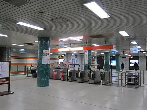 The logo of the Sapporo Municipal Subway. Sapporo Municipal Subway station