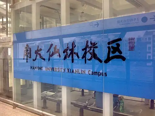 Nanjing University Xianlin Campus station (Chinese: 南大仙林校区站), is a station of Line 2 of the Nanjing Metro. It started operations on 28 May 2010 along with the rest of Line 2.[1][2] The station is decorated with an International Workers' Day theme.[3]