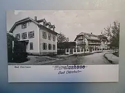 In 1906 Stafford moved back to Germany from Zurich at 52 years old. In 1907, she opened her own medical practice in Bad Dürrheim, a small town in Germany. She established lodgings for patients that, unlike other medical practices at the time, would accommodate sick children and their mothers.[11] In 1908 she purchased Villa Rheiner and undertook the role of managing the entire healthcare facility. Her vision was to provide more homeopathic remedies to sick individuals using Dürrheim's natural hot springs. The property had 3 acres of land and a 2-story house to be used as a kur-pension.[2] Stafford was a large proponent for hydrotherapy in medical capacities, however due to cost, most of the population of Dürrheim were unable to receive any benefit as they couldn't afford such types of treatment. Germany had expanded health care to ensure universal coverage only a couple of decades previously, but those who were on the lower socio-economic scale still could only afford most necessary treatments.[14]