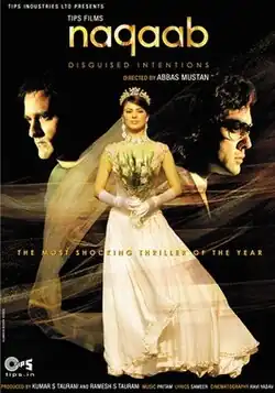 Naqaab (transl.Mask) is a 2007 Indian Hindi-language romantic thriller film[3] directed by Abbas–Mustan. The film stars Bobby Deol, Akshaye Khanna and debutant Urvashi Sharma in her film debut. Inspired by the film Dot the I, Naqaab was released on 13 July 2007 and bombed at the box office.[4]