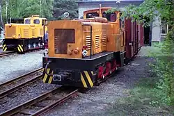 Two 1,000 mm (3 ft 3+3⁄8 in), metre-gauge, examples of this type, built in 1964, initially in service in Gotha at an industrial firm, went to the Spreewald Railway in 1970. There they were given numbers 100 905 and 906; from 1973: 199 005 and 006. Later they went to the Harz Narrow Gauge Railways. They were retired in 1991 but were given, on paper at least, numbers 399 112 and 113. No. 199 005 is now with the Harz Narrow Gauge Railways Society.