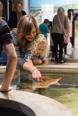 Guests can interact with animals which include little skate, Atlantic stingray, Atlantic horseshoe crab, knobbed whelk, giant Pacific octopus, and moon jelly.