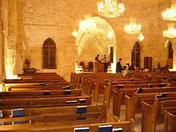 The National Evangelical Presbyterian Church of Latakia is a church in Latakia, Syria. It is a member of the Synod of Syria and Lebanon.[1] With a capacity of around 400, it is one of the biggest churches in Latakia, having approximately 1000 members.[2] Weekly activities in the church include the main Sunday service and Sunday school on Fridays, in addition to Bible study and conferences. The church has many teams for Christian songs, theater, and football games.