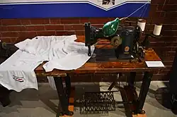 While the men worked at Bethlehem Steel, women and young children worked at Lehigh Valley Silk Mills which employed even more people than the steel industry did in Bethlehem.[8] The Silk Gallery serves to tell the story of these working women and children.[9] This exhibit, a permanent part of the museum, walks visitors through an interactive process of how silk is made. Visitors are able to experience the work done by workers by holding a 20-pound bobbin tray that children carried for hours at the silk factories.[11] Other tools are on display such as line shafts and looms.[10]
