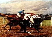 The Museum Collection[11] includes just over 300 paintings. These range from paintings of the early days of racing in England by John E. Ferneley Sr. to more contemporary champions by Richard Stone Reeves. Featured artists include: William Smithson Broadhead, Vaughn Flannery, Sir Alfred J. Munnings, Frederic Remington, Martin Stainforth, George Stubbs, Henry Stull, Edward Troye and Franklin Brooke Voss. Also on display are Kelso's five Jockey Club Gold Cup trophies and the Triple Crown trophies of Count Fleet.