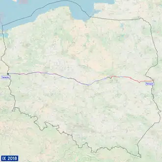 | 17 | Pniewy – Poznań – Września – Słupca – Konin – Koło – Krośniewice – Kutno – Łowicz – Sochaczew – Błonie – Warsaw | ||||