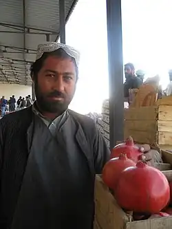 National fruit Pomegranate Pomegranate production in Afghanistan is a significant contributor to the Afghan agricultural economy. Pomegranates are a major fruit crop in many provinces such as Kandahar, Helmand, Wardak, Ghazni, Paktia, Farah, Kapisa and Balkh, and are the source of the livelihoods of thousands of people.