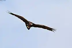 National bird Golden eagle The golden eagle (Aquila chrysaetos) is one of best known birds of prey and most widely distributed species of eagle. It is dark brown, with lighter golden-brown plumage on its nape.