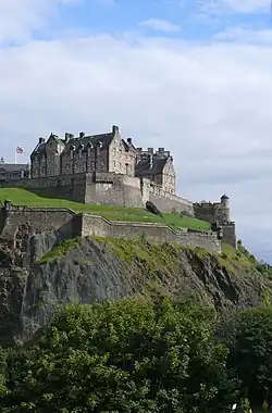 Edinburgh Castle, a national icon of Scotland. Considered one of the most important strongholds in the Kingdom of Scotland, Edinburgh Castle was involved in many historical conflicts from the Wars of Scottish Independence in the 14th century to the Jacobite rising of 1745. Research undertaken in 2014 identified 26 sieges in its 1,100-year history, giving it a claim to having been "the most besieged place in Great Britain and one of the most attacked in the world" |