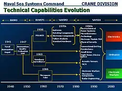 3. ^ "History of Crane Division, Naval Surface Warfare Center". www.crane.navy.mil. Archived from the original on 1 January 2004. Retrieved 26 March 2022.