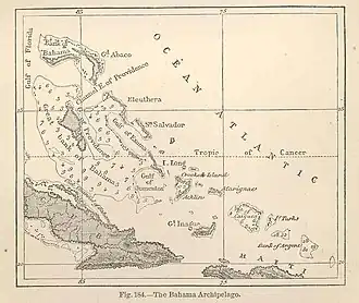 Navidad Bank in the lower right corner of an 1873 map of the Bahamas.