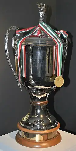 In the 1950s, the dominance of Ferencváros and MTK were weakened by the emergence of Honvéd with players such as Puskás,[14] Bozsik,[15] Czibor,[16] and Budai.[17] Later these players played in the final of the 1954 FIFA World Cup. In the 1950s, Honvéd managed to win the championship five times. During the early 1950s, Honvéd players formed the backbone of the legendary Mighty Magyars. In 1956, the Hungarian league was suspended due to the Hungarian Revolution. The league was led by Honvéd after 21 rounds but the championship was never been finished.[18] In 1957 Vasas won their first ever national title.
