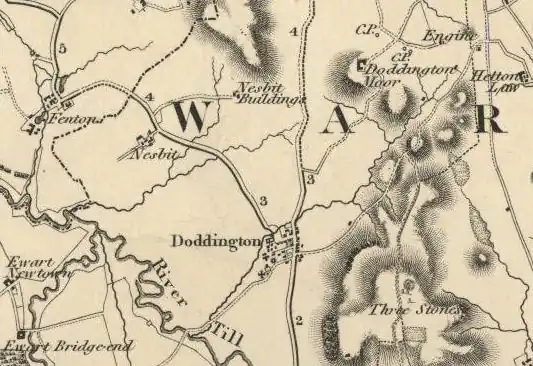 Nesbit is near the confluence of the Glen and Till rivers and the hypothesized location of one of King Arthur's battles against invading Anglo-Saxons.[2] Latin documentation dating to 1242 lists "Dodington cum Nesebit membro suo" (Doddington with its member Nesbit) as among the holdings of Baron William de Vesci.