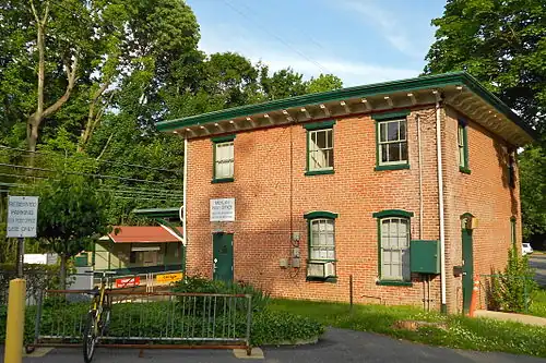 The first railway was the Leiper Railroad, a horse-drawn quarry rail line, constructed in 1809–1810 and used to haul cut stone until about 1828. That early rail line was superseded by the Leiper Canal.[7] The first steam-locomotive train came through in 1854; it used a single track with a sidetrack at Wallingford. The first post office in Nether Providence was established at Hinkson's Corner in 1873. Trolleys also contributed to the area's development. The first independent trolley was the Chester and Media Electric Railway, chartered in 1892. The last trolley through the township closed in 1938. The Nether Providence Police Department was established in 1935, and automobile parking was regulated in 1947 and speed in 1949.