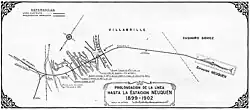 In 1896, due to territorial disputes with Chile, the Argentinian Government commissioned the British-owned company Buenos Aires Great Southern Railway (Spanish: Ferrocarril del Sud) to expand the existing railroad tracks from the city of Bahía Blanca, in the Buenos Aires Province, to the Neuquén National Territory. The expansion of the railroad was aimed at facilitating the quick transport of troops and supplies to the Chilean border in case of war.[1] A previous contract proposal by the Southern Railway was rejected in 1895 by the Argentine Chamber of Deputies, as the company desired to lay tracks until General Roca, Río Negro or the confluence of the Limay and Neuquén rivers to avoid building a bridge on the site of the current city of Neuquén. The Chamber of Deputies felt that the construction of a railway bridge was necessary to guarantee the movement of Argentinian troops to the rest of the region in case the river flooded.[2] By that time, the capital of the Neuquén National Territory was located in the city of Chos Malal. The journey between the city of Buenos Aires and the capital of the Territory lasted fifteen days, while the mail service arrived once a month.[3]