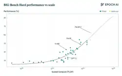 BIG-Bench (hard)[7] performance vs AI scale as a sigmoid