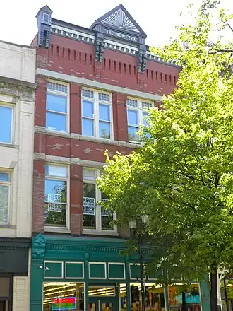 This historic structure is a three-story, L-shaped, brick building that was designed in the Queen Anne style. The original section was built between 1890 and 1891. The rear section was expanded in 1900, 1903, and 1914 to accommodate the growing printing company. It originally housed the New Era newspaper and printing company. A number of notable academic journals and books were printed here between 1893 and 1922, including Popular Science Monthly and the Journal of Negro History.[2] When listed in 1983, it was occupied by a Rite Aid drug store.[3]