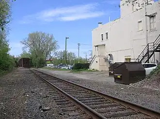 The site of the railroad's former Derby Junction station. The station no longer exists, but the tracks are in service as part of Metro-North's Waterbury Branch.