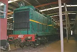 By July 1991, it had moved to CountryLink's XPT Service Centre in Sydenham (where the Paxman engined XPTs are maintained), where a spare engine was installed.[7] It returned to Thirlmere in November 1992, but was not restored to service.[8] In April 2009, 4102 was moved for further storage at the Broadmeadow Locomotive Depot. In May 2023 it was moved to the Heritage Hub at Chullora Workshops.