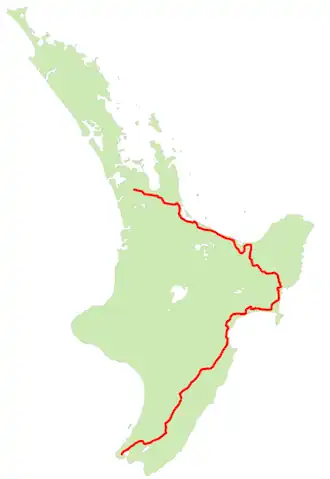 State Highway 2 (SH 2) runs north–south through eastern parts of the North Island of New Zealand from the outskirts of Auckland to Wellington. It runs through Tauranga, Gisborne, Napier, Hastings and Masterton. It is the second-longest highway in the North Island, after State Highway 1, which runs the length of both of the country's main islands.