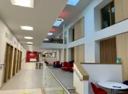 In 2016, the local council approved the first phase of the university's new Campus development plan. Phase one included a £22 million investment in a new hall of residence, teaching block, social spaces and coffee bar.[44][45] The accommodation blocks are designed as a ribbon of buildings that respond to the natural sweep of the eastern boundary.[33] The new teaching block includes a new lecture theatre, seminar rooms and atrium.[46]