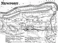 Newport was incorporated as a township in 1790. It is one of the original townships in Luzerne County. The municipality derives its name from Newport, Rhode Island. The first settlement in modern-day Newport Township was established by Major Prince Alden in 1772. A few years later, his sons (Mason and John) erected a forge on Nanticoke Creek. One of the first stores in the territory was established by Jacob Ramback; it was constructed on a road between Wanamie and Nanticoke.[3]