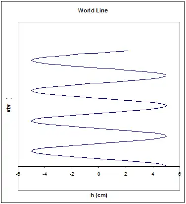 In this frame, the vector is the position vector for the second particle. An observer in the craft would think the second particle was oscillating in a potential well generated by a gravitational field. This is an example of a coordinate acceleration due to the choice of frames as opposed to a physical acceleration due to actual forces.