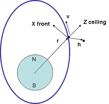 In this example, we can define a local coordinate system such that the -direction is toward the ceiling of the craft and this is directed along . The -direction is toward the front of the craft and is in the direction of . The -direction is toward the left side of the craft.