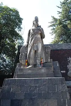 Nezahualcoyotl (Classical Nahuatl: Nezahualcoyōtl [nesawalˈkojoːtɬ], modern Nahuatl pronunciation), "Fasting Coyote"[1] (April 28, 1402 – June 4, 1472) was a scholar, philosopher (tlamatini), warrior, architect, poet and ruler (tlatoani) of the city-state of Texcoco in pre-Columbian era Mexico. Unlike other high-profile Mexican figures from the century preceding the Spanish conquest of the Aztec Empire, Nezahualcoyotl was not fully Mexica; his father's people were the Acolhua, another Nahuan people settled in the eastern part of the Valley of Mexico, on the coast of Lake Texcoco. His mother, however, was the sister of Chimalpopoca, the Mexica king of Tenochtitlan.