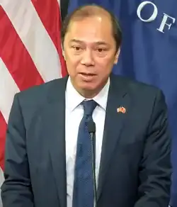 Nguyễn Quốc Dũng is a Vietnamese diplomat, serving as the Vietnamese Ambassador to the United States since 2022.[1] Nguyễn presented his credentials to President Joe Biden on 19 April 2022.[2] Prior to his term, he served at Deputy Foreign Minister from 2016 to 2022.