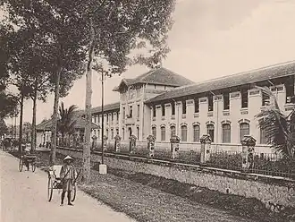 In 1915, the construction of the school was completed and the first pupils were admitted. The Governor-General of French Indochina at that time was Ernest Roume and he, together with Governor Courbeil, cut the inauguration tape and declared the beginning of a new school year. 42 schoolgirls were enrolled in the first year. Uniforms at that time were violet áo dài, symbolising the purity of Vietnamese women. For this reason the school had also been called Áo Tím (Violet Dress) all-girls school. All pupils lived in Sài Gòn and nearby areas and only later were hostels provided for schoolgirls from further afield. The school was organised on several levels: Infants (Enfantin), Superior (Supérieur), Conference of Primary Education (CEP). Students had to pass the exam for the Certificate of Fundamental Education after graduating from senior classes. In 1918, because of the increase in student numbers, a new building parallel to the previous one was constructed. The new building was multifunctional with the lower floor being used as a hostel for students. At the rear was the infirmary, the wash-room and the kitchen. That was also the place where domestic science and embroidery were taught.
