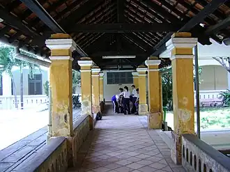 In September 1922, Governor-general Albert Sarraut initiated the first year classes. A marble stone that was carved "COLLÈGE DES JEUNES FILLES INDIGÈNES" (College of indigenous girls) was erected in front of the school gate, though the school continued to be known primarily as "Áo Tím all-girls school".