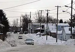 The community of Wahnapitae is located east of Sudbury along Highway 17. Established as a logging community, it was the first settlement in Nickel Centre. The community takes its name from the Wanapitei River, which flows through Wahnapitae, and whose name in turn comes from the Ojibwe word waanabidebiing, which means "concave-tooth [shaped] water" and describes the shape of Lake Wanapitei.[13] The correct spelling of the community's name should not be confused with the correct spelling for the water bodies. During early stages of the town's development, the river was used by multiple companies to send harvest logs to Southern Ontario for processing. After mining became more viable in the Sudbury District, logging operations in Wahnapitae were stopped, leaving the town as a residential community.
