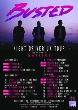 The Night Driver Tour 2017 was a 2017 concert tour by English pop rock band Busted in support of the band's third studio album Night Driver (2016).[1] It was their second tour since their split in 2005.[1]