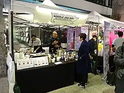 A key milestone in the history of night markets in Hong Kong was the launch of the PMQ Night Market in 2014.[4] Contemporary art products, including handicrafts, and fusion food, were introduced, adding new elements to the traditional night market. Bands were invited to perform shows at this market aimed mainly at Hong Kong young people.