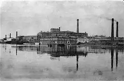 The settlement grew up in the seventeenth and eighteenth century around the church of St Nicholas. The location was transformed when Savva Vasilyevich Morozov bought land here in 1797. After he had bought his freedom in 1820, he moved his business from his nearby native village of Zuevo. In the period 1837-1838 he established a new factory on wasteland.[1] By 1859 it had a registered population of 2,489 people. This rose to 25,203 in 1897.[2] The Morozov property in Nikolskoye was split between Vikul Eliseevich Morozov and his uncle Timofei Savvich Morozov which sat side by side each other on the banks of the Klyazma River.