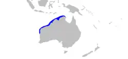 Endemic to northwestern Australia, the Ningaloo maskray has been found from Shark Bay in Western Australia to the Gove Peninsula in Northern Territory.[1] This bottom-dwelling species appears to have very restricted habitat preferences: it inhabits areas of fine reddish sand close to reefs, in inshore waters less than 5 m (16 ft) deep.[3]