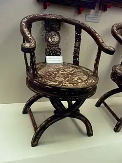 Carved chair with stylized bone inlay, made in Ningbo in Qing Dynasty