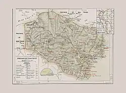 Ninh Thuận's topography is typical for the South Central Coast in that high mountains are located not only near the western border to the Central Highlands, but also near the coast, the highest of which is Chúa mountain (Vietnamese: Núi Chúa) at 1,040 metres (3,410 ft) in the north east of the province.[7] Several other peaks with heights up to 643 metres (2,110 ft), including Đá Bạc mountain (Vietnamese: Núi Đá Bạc) in the south, are located along the coast.[7] The highest mountains are located at the borders to Khánh Hòa province and Lâm Đồng province, with three mountains of over 1,600 metres (5,200 ft) and the highest at 1,652 metres (5,420 ft), Sương Mù mountain (Vietnamese: Núi Sương Mù).[7] Only a small part of the province around Phan Rang has elevations of under 50 metres (160 ft).[8] The province's major river is the Dinh River, which flows through the main lowland of the province as well as Phan Rang. It has several tributaries in the province and is connected to Don Duong Lake in Lâm Đồng province.[7]