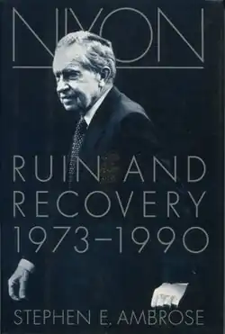 Nixon: Ruin and Recovery, 1973–1990 is a 1991 book by American historian Stephen E. Ambrose and the third part of a three-volume biography of President of the United States Richard Nixon. The series began with Nixon: The Education of a Politician, 1913-1962 and continued with Nixon: The Triumph of a Politician, 1962-1972. Ruin and Recovery details Nixon's fall from grace after his resounding 1972 reelection, including the Watergate scandal and his eventual resignation of the Presidency in 1974. It also describes Nixon's life after his presidency and the partial restoration of his reputation.