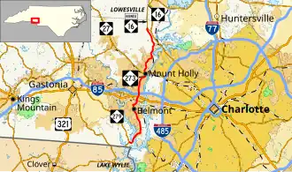 North Carolina Highway 273 (NC 273) is a primary state highway in the U.S. state of North Carolina. It connects towns and communities along the banks of the Catawba River, in eastern Gaston County.