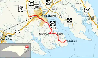 Glen Cove0.00.0Dead end at Pasquotank RiverSouthern terminus