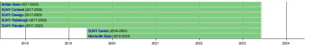 | State University of New York at Oswego | Oswego, New York | Lakers | 1861 | Public | 8,909 | 2017 | |