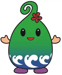 Noto's mascot is Notorin (のっとりん), a fairy of the Satoyama-Satoumi sea. Her name comes from the Noto dialect meaning "momentous". Her body is made up of "no" hiragana letter. She is green (to represent Satoyama and Satoumi) and blue (to represent the sea). Her body contains a wave pattern as well. Her feet are coloured purple to symbolize blueberries. She wears a rhododendron obtusum flower on her head. She is designed by Fujio Kuroda from Shizuoka Prefecture.[6]
