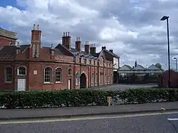 The station was opened in 1857 by the Great Northern Railway (GNR) at the terminus of its line from Grantham, originally built by the Ambergate, Nottingham, Boston and Eastern Junction Railway.[4] The station was designed by the local architect Thomas Chambers Hine. GNR trains originally used the Midland station in Nottingham, but there were frequent disputes, especially when the GNR began running through trains from London King's Cross via Grantham in a shorter time than the Midland Railway could manage. To solve the problem, the GNR opened its own station served by a new line from near Netherfield, adjacent to the Midland line whose tracks it had previously used.